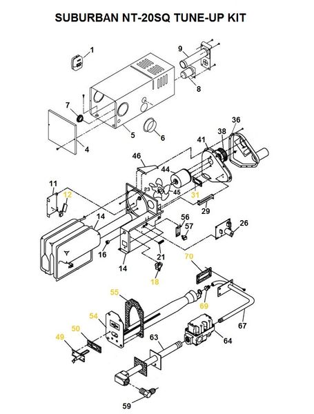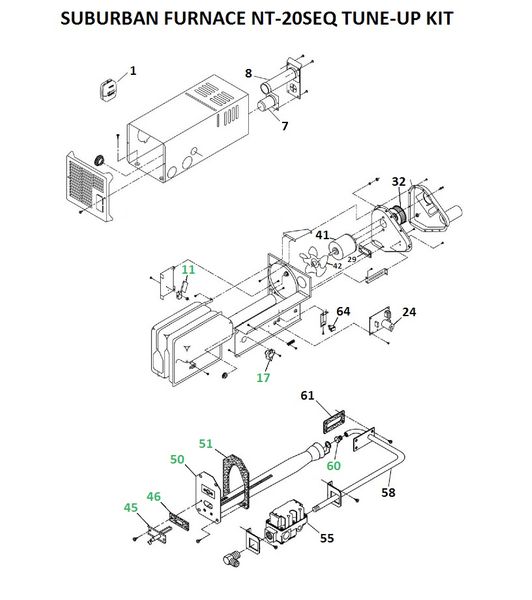 Suburban Furnace User Information Manual NT20SQ Suburban Furnace NT-20SQ Tune-Up Kit SUBURBAN FURNACE NT-20SQ EXPLODED PARTS VIEW LINKS Item# 1…